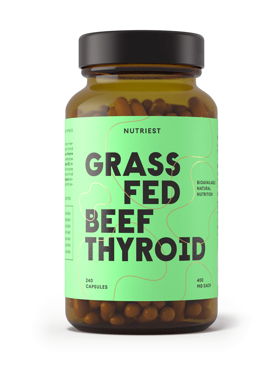 Enthält bioaktive Schilddrüsen-Peptide aus echter Rinderschilddrüse. Selen trägt zu einer normalen Schilddrüsenfunktion bei, während Vitamin B12 und Niacin zu einem normalen Energiestoffwechsel beitragen.
